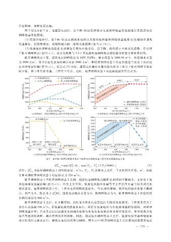 临界调峰状态 1前,混蓄电站调峰效益为 1055万kWh、抽水流量为 1006.94m ?s、对应抽水水量