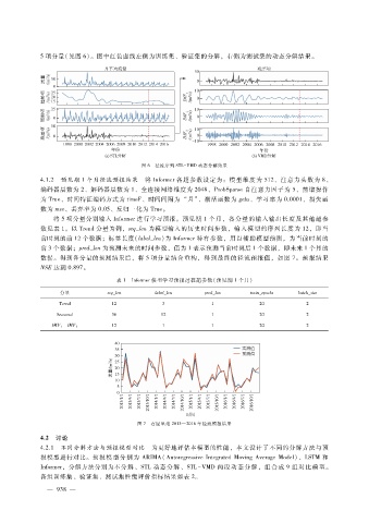 5项分量(见图 6)。图中红色虚线左侧为训练集、验证集的分解,右侧为测试集的动态分解结果。