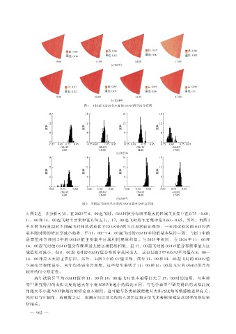 由图 2 进一步分析可知,在 2023 年 8:00 起飞时,OSAVI 值分布频率最大的区域主要集中在 0.75 ~ 0.80,