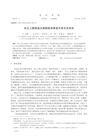 下游水库群防洪库容互用性问题。周新春等 [12] 针对 2016 年长江上游干流梯级水库群组成,结合不同典