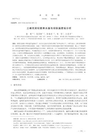 段上游坝面及内部的实测温度数据,分析了三峡水库水温和大坝温度随时间和空间的演变规律,揭示了三峡水库