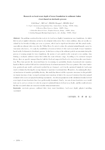 Keywords:stochastic  process;sediment-laden  river;tower  foundation;local  scour  depth;physical  modeling
