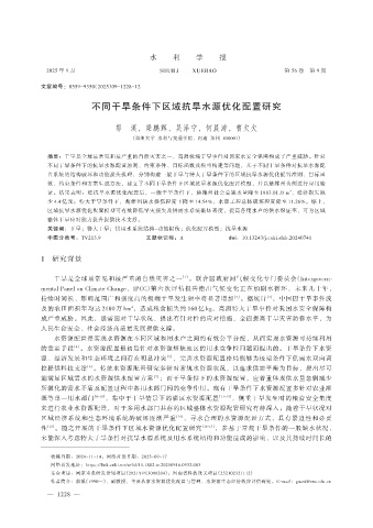 控提供科技支撑 [6] 。传统水资源配置研究多针对常规水资源状况,以追求供需平衡为目标,提出尽可