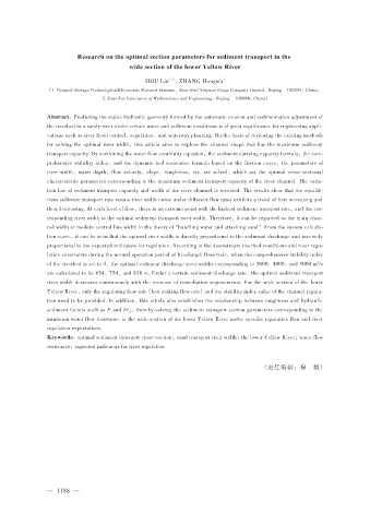 tion law of sediment transport capacity and width of the river channel is revealed. The results show that the equilib⁃