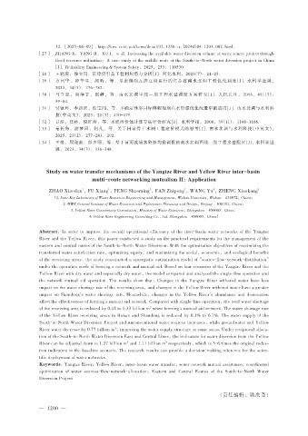 Keywords:Yangtze River;Yellow River;inter-basin water transfer;water network mutual assistance;coordinated