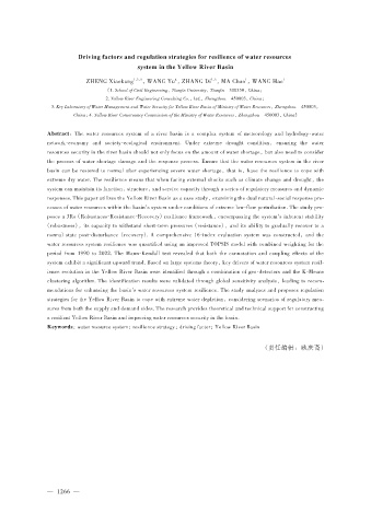 Keywords:water resource system;resilience strategy;driving factor;Yellow River Basin