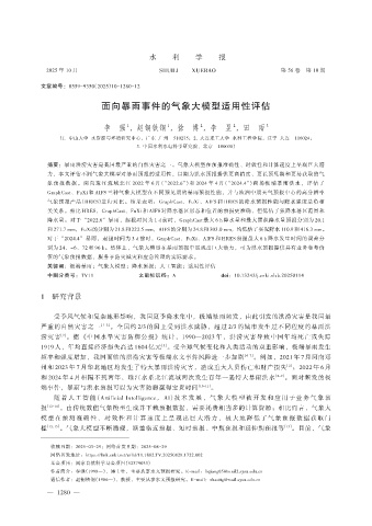 力,本文评估不同气象大模型对暴雨预报的适用性,以期为洪水预报提供更高精度、更长预见期和更易获取的气