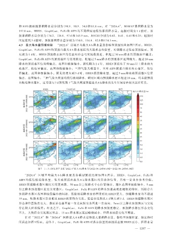 致落区,但位置偏西,范围和极值偏小;三种气象大模型中,只有 AIFS 预报出降水核心落区,但位