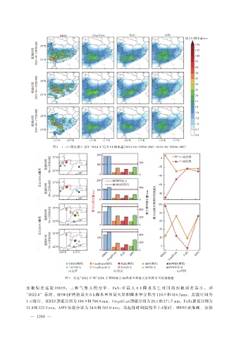 21.8和222.5 mm,AIFS 预报分别为 24.8 和 303.0 mm;当起报时间提前至 3 d 前时,HRES 更准确,预报