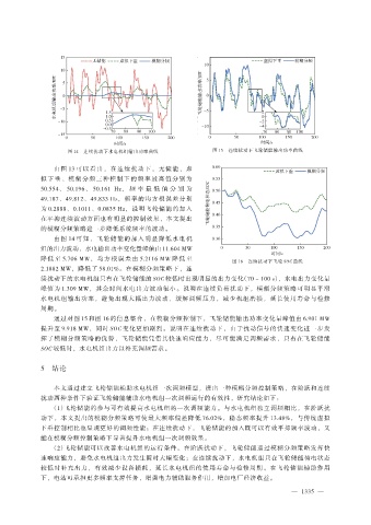 降 低 至 5.706 MW, 均 方 根 误 差 由 5.2116 MW 降 低 至 图 16 连续扰动下飞轮 SOC 曲线