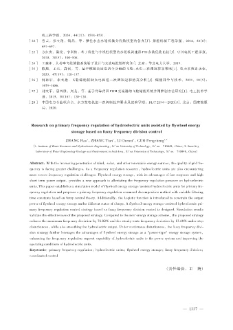 [ 26] 何 林 轩 , 李 文 艳 . 飞 轮 储 能 辅 助 火 电 机 组 一 次 调 频 过 程 仿 真 分 析[J] 储 能 科 学 与 技 术 , 2021, 10(5):