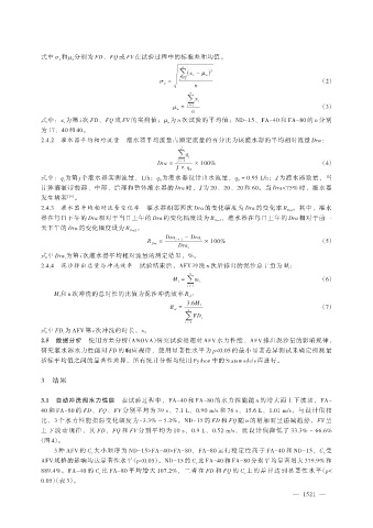 式中:x 为第 i 次 FD、FQ 或 FV 的实测值;μ 为 n 次试验的平均值;ND-15、FA-40 和 FA-80 的 n 分别